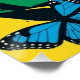 Un chaton mignon aux yeux bleus joue dans la nature avec des fleurs et des papillons dans le style de peinture Pop Art.