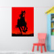 Célébrez la force et la liberté avec cette affiche de cheval saisissante. Une silhouette noire de cheval au galop jaillit vers l'avant sur un fond rouge vif, dégageant un sentiment de mouvement et de puissance brute. Parfait pour les amoureux des animaux, les intérieurs modernes ou comme pièce maîtresse audacieuse dans n'importe quelle pièce.