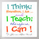 Je pense que le sentiment est clair, oui ... :) Ceux qui pensent autrement n'ont jamais enseigné. Ceci est également disponible avec de l'espace pour la personnalisation sur mes autres posters et produits d'enseignement. Citation originale sur les articles d'enseignants par Sharon Rhea Ford. Articles originaux des enseignants (avec copyright) par Sharon Rhea Ford ... Copyright : Tous droits réservés Enregistré : Sat Fév 07 14:31:50 UTC 2009 Empreinte digitale : Afficher l'empreinte digitale e3860c4f5cfa933c3ebf98f88c327b9377 00b9da37b2ee0a33851d36eddb Titre : Citation d'enseignement Description : Je pense; par conséquent, je suis, et j'enseigne; par conséquent, je peux. MCN : C9E78-CCFC0-4E856