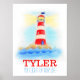 Affiche de décoration nautique pour enfants de style aquarelle. Idéal pour les chambres d'enfants sur le thème nautique ou pour un futur capitaine. Personnalisez cet article avec le nom de votre enfant (jusqu'à 7 lettres) et un message de votre choix. Cet exemple se lit : TYLER Vous illuminez notre vie. Une excellente idée de cadeau pour les nouveau-nés garçons et les fêtes de bébé garçon. Peint de manière unique à l'aquarelle et conçu par Sarah Trett.