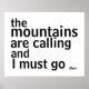Muir citation poster audacieux style moderne noir et blanc avec citation Les montagnes appellent l'art mural de style minimaliste pour la décoration à la maison ou au bureau.