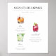 Affiche de cocktails de mariage Boissons Signature. Davantage d'images de boissons sont disponibles. Cliquez sur "personnaliser" puis sur "éditer à l'aide de l'outil de conception". Révélez les options de boissons supplémentaires en cliquant sur l'icône d'œil caché à côté de chaque image de boisson. Cliquez et faites glisser pour personnaliser le panneau avec vos cocktails personnalisés !
