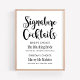 Des affiches de cocktails signature pour un mariage chic et décontracté avec une typographie script stylée et des recettes de cocktails personnalisées pour les mariés. Palette de couleurs noir et blanc classique. Prêt à personnaliser pour votre événement.