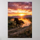 Ajoutez une déclaration western raffinée à votre intérieur avec ce magnifique poster de chevaux sauvages au coucher du soleil, conçu avec des couleurs naturelles riches, un mouvement cinématique et une profondeur de paysage élégante.