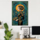 Capturez l'élégance fluide d'une performance de cabaret des années 1920 avec cette superbe silhouette Art Déco. Avec une danseuse gracieuse de profil tenant un éventail, sur fond de soleil doré rayonnant et d'architecture géométrique sarcelle profonde. La composition est encadrée de motifs complexes, ce qui en fait une pièce maîtresse parfaite pour une loge, une chambre ou un salon sophistiqué.