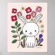 Affiche de décoration de nursery Lapin Mignon Fleu