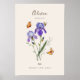 Cette illustration aquarelle de fleur de naissance Iris fera un cadeau d'anniversaire personnalisé spécial, ou un beau cadeau pour la fête des Mères, Noël ou un nouveau-né.