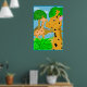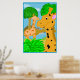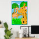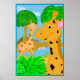 Une illustration amusante de deux girafes dans un paradis de la jungle. C'est une excellente affiche pour la chambre d'un enfant. La couleur de fond est personnalisable.