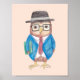 Monsieur Hibou portant un livre. Impression artistique de hibou drôle.
