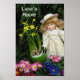 Belle affiche colorée de poupée et de fleurs avec une pancarte disant "Luna’s Room".