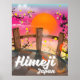 Affiche de la fleur du Japon Himeji. belle affiche de voyage de dessin animé japonais rose.