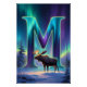 Apportez la beauté majestueuse de l'hiver dans votre espace avec cette œuvre d'art murale Lettre M Aurore. Une lettre M lumineuse s'élève d'une forêt enneigée, illuminée par des rubans fluides de lumières boréales dans des nuances scintillantes de turquoise, d'émeraude et de violet. Un orignal paisible se tient au premier plan, doucement éclairé par la lueur de l'aurore, ajoutant un orignal forestier paisible à la scène hivernale magique.