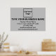 Poster que vous pouvez customiser pour mettre votre nom d'entreprise. Vous pouvez l'utiliser comme matériel de marketing pour annoncer votre entreprise ou pour promouvoir votre marque auprès de clients ou de clients. Affiche personnalisable que vous pouvez utiliser pour développer la sensibilisation de marque. Customisez-le et affichez-le sur le mur de votre bureau, de votre entrée, de votre réception, de votre hall ou dans des endroits appropriés visibles aux clients ou aux clients. Les dessins sont des textes noirs en forme de rectangle au format arrière - plan gris et au format paysage. Pour customiser cette affiche, téléchargez votre logo d'entreprise, tapez votre nom d'entreprise ou d'entreprise, votre adresse, votre numéro de téléphone, votre courriel et votre site Web ou votre page de médias sociaux. Veuillez vérifier l'apparence après avoir téléchargé le logo et tapé des textes. Si l'apparence vous plaît, vous pouvez passer votre commande maintenant. Si vous avez besoin de redimensionner et déplacer le logo et les textes pour s'adapter à cette affiche ou à d'autres formes et tailles que vous choisirez, veuillez modifier l'outil de conception. Vous pouvez également effectuer d'autres modifications en fonction de l'apparence que vous préférez dans l'outil de conception, comme changer la couleur de l'arrière - plan de l'affiche, la couleur de la police et le style de police.