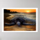 Tortue de mer sur la plage au coucher du soleil. Oahu Hawaii 2009.