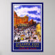 Grande illustration tirée d'une affiche de voyage vintage pour Atlantic City en train. Grande image de la promenade et des hôtels vintages.