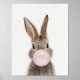 Lapin soufflant un bubble gum rose. Art pour la nurserie pour décorer la chambre de votre enfant.