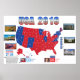 Synopsis rapide et résultats de l'élection de 2016, décoré et exposé avec des graphiques colorés et de belles vues de cartes postales des États-Unis.