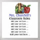 Cela a été un grand succès avec mes amis enseignants et des clients avec mes autres affiches d'enseignants, donc je lui offre plusieurs façons différentes pour la nouvelle année scolaire. Il suffit de taper sur chaque ligne pour ajouter vos règles ; cependant, si vous avez besoin d'aide, veuillez me contacter ! J'ai aussi 2 versions populaires sur ma page principale - d'un autre de mes magasins Zazzle. Modifiez la couleur de la bordure si vous le souhaitez. Éliminez/diminuez la taille de certains textes. Varier les couleurs par règle. Amuse-toi bien avec ça ! C'est la moitié du plaisir de Zazzle ! Si votre école est intéressée par l'achat de ceci comme règles pour l'école, veuillez informer vos administrateurs que Zazzle offre de généreuses réductions de quantité, et beaucoup de mes clients sont heureux de l'utiliser tous les jours. Merci tellement, et s'il vous plaît passer mon adresse de magasin à des amis puisque j'utilise les bénéfices pour acheter des fournitures d'art pour mes propres étudiants en art ... ; ) Voici à une grande année scolaire (et que vos règles fonctionnent mieux pour vous que la mienne faire pour moi ... Honnêtement, je ne suis tout simplement pas un bon disciplinariste; pourtant, mes classes avaient 36 par dernière année! OUI. Nous nous sommes bien amusés, et je n'ai pas ajouté trop de Merci gris pour être ici, et s'il vous plaît visiter souvent, Sharon Rhea Ford (NBCT - Art) www.zazzle.com/sharonrhea* (Regardez mon école - section enseignant pour plus d'informations et des produits correspondants aussi!)