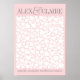 Cette affiche de livre d'or personnalisable ("Cœurs aléatoires") est une façon unique et alternative pour vos invités de laisser un message personnel le jour de votre événement au lieu du livre d'or traditionnel. Des cœurs blancs de différentes tailles sont dispersés sur l'affiche, avec de l'espace pour que 275 invités puissent signer leur nom, leurs initiales ou laisser un petit message. Les cœurs varient en taille entre 1/2" et 2 1/2". Le fond présenté est d'une couleur rose contemporaine, mais peut être changé en TOUTE COULEUR que vous souhaitez pour correspondre à votre thème de couleur d'événement, il suffit de cliquer sur le bouton "Personnaliser" et de choisir une couleur de fond imprimé différente dans le sélecteur fourni. Tout le texte est également personnalisable, il suffit d'utiliser les modèles faciles fournis, puis d'ajuster la position et la taille des polices avec l'option "Personnaliser". Une fois terminé