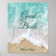 Cette pancarte de signature de livre d'or de mariage est inspirée de la plage et accentuée de vagues d'océan turquoise, de sable de plage, d'étoiles de mer, de dollars de sable et de coquillages, ce qui la rend parfaite pour un mariage sur la plage, tropical ou de destination. Elle fait partie de la collection de mariage Vagues Turquoise.