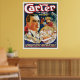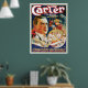 Illustration vintage de 1922, affiche de magie présentant le magicien Charles Carter, Carter le Grand (1874-1936). Le corps d'une femme scié en deux sous les yeux de tous les spectateurs puis reconstitué. La dernière merveille de la chirurgie de guerre. Cette affiche de magie vintage représente un squelette aux yeux lumineux, un petit diable, un corps en lévitation, lisant une boule de cristal et Carter le Grand sciant une femme en deux !