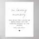 Cette affiche "à la mémoire" présente une police manuscrite élégante et un design minimaliste moderne. Modifiez facilement les polices, les couleurs de police et la couleur de fond pour correspondre au style de votre événement. La combinaison de couleurs simple en noir et blanc en fait l'élément parfait pour n'importe quel événement. Utilisez cette affiche pour votre réception de mariage, douche de mariée, douche de couple, etc.