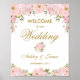 Affiche de mariage féminine et élégante avec de magnifiques fleurs aquarelles rose blush et confettis dorés
