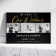 Affiche de mariage élégante avec écriture dorée moderne photo en noir et blanc avec possibilité de personnaliser les fiançailles avec trois photos en noir et blanc Panneau de mariage avec écriture dorée sur fond noir. Toutes les couches sont déverrouillées pour que vous puissiez cliquer pour personnaliser davantage et repositionner le texte, la photo ou même changer la taille ou le type de police.
