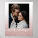 Signalétique de mariage moderne et élégante avec un dégradé de rose gold et un script écrit à la main en blanc. Personnalisez avec vos détails uniques.