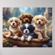 Cette affiche présente de mignons chiots dans un panier sur un pré fleuri. Le motif parfait pour tous les amoureux de les chiens et les enfants ! Belle décoration de chambre pour enfants.
