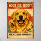 Deux Golden Retrievers joyeux délivrent de l'encouragement avec une touche d'humour. Le design rétro en détresse, associé aux carreaux de salle de bain rouges et bleus gras, rend cette affiche à la fois charmante et drôle. Un cadeau parfait pour les amoureux des chiens, les familles ou quiconque veut que sa décoration de salle de bain fasse sourire.