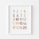Affiche de nombres à l'aquarelle Boho