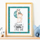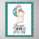 Graphisme de cerf aquarelle bébé et lune bleue avec citation de style typographique "Rêve Grand Petit Un" avec bordure bleue bohème fait un ajout adorable à n'importe quelle nurserie ou mur de chambre d'enfant.