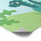 Mignon dinosaure dans une coquille d'oeuf, c'est un bébé garçon dino, affiche de nursery paysage préhistorique. Affiche de dinosaure souriant bleu et vert pour garçons.