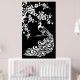 Empreinte personnalisée de paon blanc noir et de fleurs de cerisiers, ornée d'une silhouette blanche d'oiseau paon et d'une branche de cerisier -sakura- avec de jolies fleurs sur arrière - plan noir. Un design B&W aux allures orientales asiatiques.