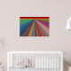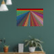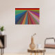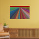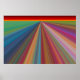 Cette affiche accrocheuse est une peinture numérique d'un paysage abstrait composé de lignes inclinées presque comme des routes menant à un horizon rouge et or. Les lignes étroites et convergent à l'horizon lointain, donnant une impression de voyage. Elles sont dans toutes les couleurs de l'arc-en-ciel, rouge, orange, vert, bleu, violet, rose et or. L'affiche ferait une déclaration de couleur forte mais harmonieuse dans n'importe quelle pièce.