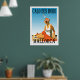 Une affiche rétro qui n'a jamais existé jusqu'à présent. Une recréation d'une vieille affiche. Scène de style vintage de Calo des Moro Beach de l'époque art déco. Couleurs vives avec une femme sur la plage bronzage avec une couverture rouge et un casquette à pois de style flapper. Exclusivement par Zazzle.com/Retro_Art Store.