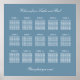 Affiche de plan de table de mariage à 15 tables Bleu Poussiéreux, veuillez personnaliser les noms du couple et les noms des invités ainsi que tout autre texte que vous souhaitez personnaliser. Une affiche de plan de table élégante avec un texte blanc élégant sur un beau fond bleu poussiéreux.