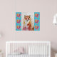 Affiche de renard rouge mignon animal rose sarcelle roses, avec un nom entièrement personnalisable. Un glorieux design floral à l'aquarelle. Conçu à partir de mes peintures originales à l'aquarelle, que j'ai peintes dans mon propre jardin de fleurs.