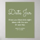 Affiche de signe de pot de date vert sauge pour mariage, salle de réception de mariage dans un script de calligraphie élégant. Ce produit fait partie d'une collection, veuillez consulter notre collection de magasin ci-dessous pour les articles assortis. Découvrez plus d'options de taille et de papier ci-dessous pour personnaliser cette option de modèle