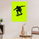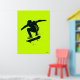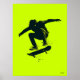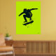 Célébrez la culture skate avec cette affiche de skater audacieuse. Une silhouette de skateboardeur en plein trick explose sur un fond vert néon, capturant le mouvement et l'attitude urbaine. Parfait pour les chambres, les studios et les cadeaux pour les fans de skateboard. Imprimé avec des détails nets et des couleurs vives.