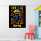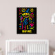 Célébrez Halloween avec ce design d'art pop de sorcière néon saisissant, qui brille en rose, jaune, vert et bleu sur fond noir. De la collection Neon Noise, c'est un choix parfait de décoration murale pour ceux qui aiment l'énergie audacieuse, amusante et électrique.