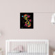 Cette affiche est une illustration dans le style de Rosemaling, un art populaire né en Norvège. En tant que graphiste au patrimoine scandinave, j'ai toujours aimé les créations de Rosemaling, les motifs de l'arcade des coups de peinture, des fleurs et des images chaleureuses dans des couleurs vives. Illustré par des tons de bijoux sur un arrière - plan noir, ce poster sera un complément frappant à votre décor.
