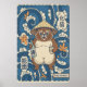 Affiche de Tanuki Joyeux - Folklore Japonais, Orange Bleu Beige 1