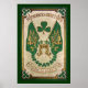 Affiche traditionnelle vintage de la Saint-Patrick avec drapeaux, trèfles, couleurs vert et or, et "Ering Go Braugh."