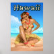 Affiche de voyage à Hawaï Aigle de mer Jupe en herbe d'Angourie Océan Plage Impression d'art 346