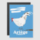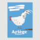 Ariège france, affiche de voyage rétro avec une poule dessinée à la main.