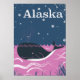 Alaska Cartoon affiche de voyage de baleine vintage, affiche de vacances en Alaska.