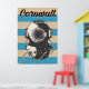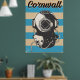 Poster de voyage de style néo-nautique vintage ou rétro d'un casque de plongée.
