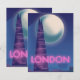 Poster de voyage de Neon Londres avec une pleine lune sur la célèbre Skyline de Londres.
